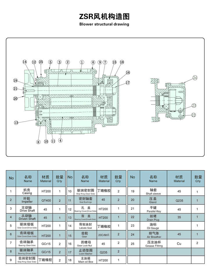 4.每個葉輪通過同步齒輪始終保持在正確的相位,并且沒有相互接觸的現(xiàn)象,因此可以實(shí)現(xiàn)高速運(yùn)轉(zhuǎn)。